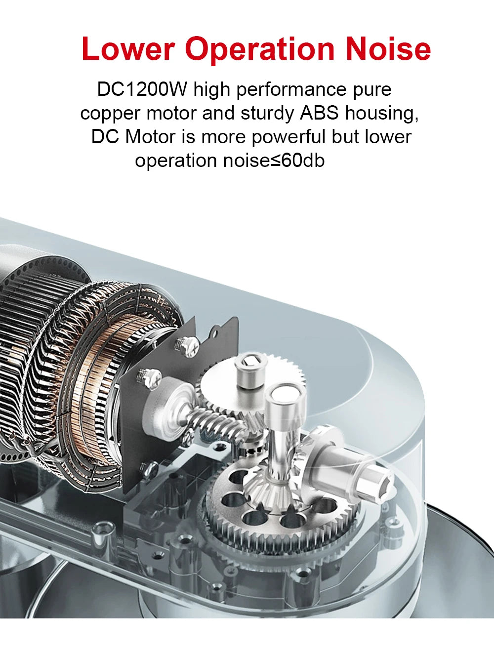 BioloMix Kitchen Food Stand Mixer, Blender, Quiet Motor, Cream Egg Whisk, Whip Dough Kneader, 6-Speed, 1200 W, 6 L, DC