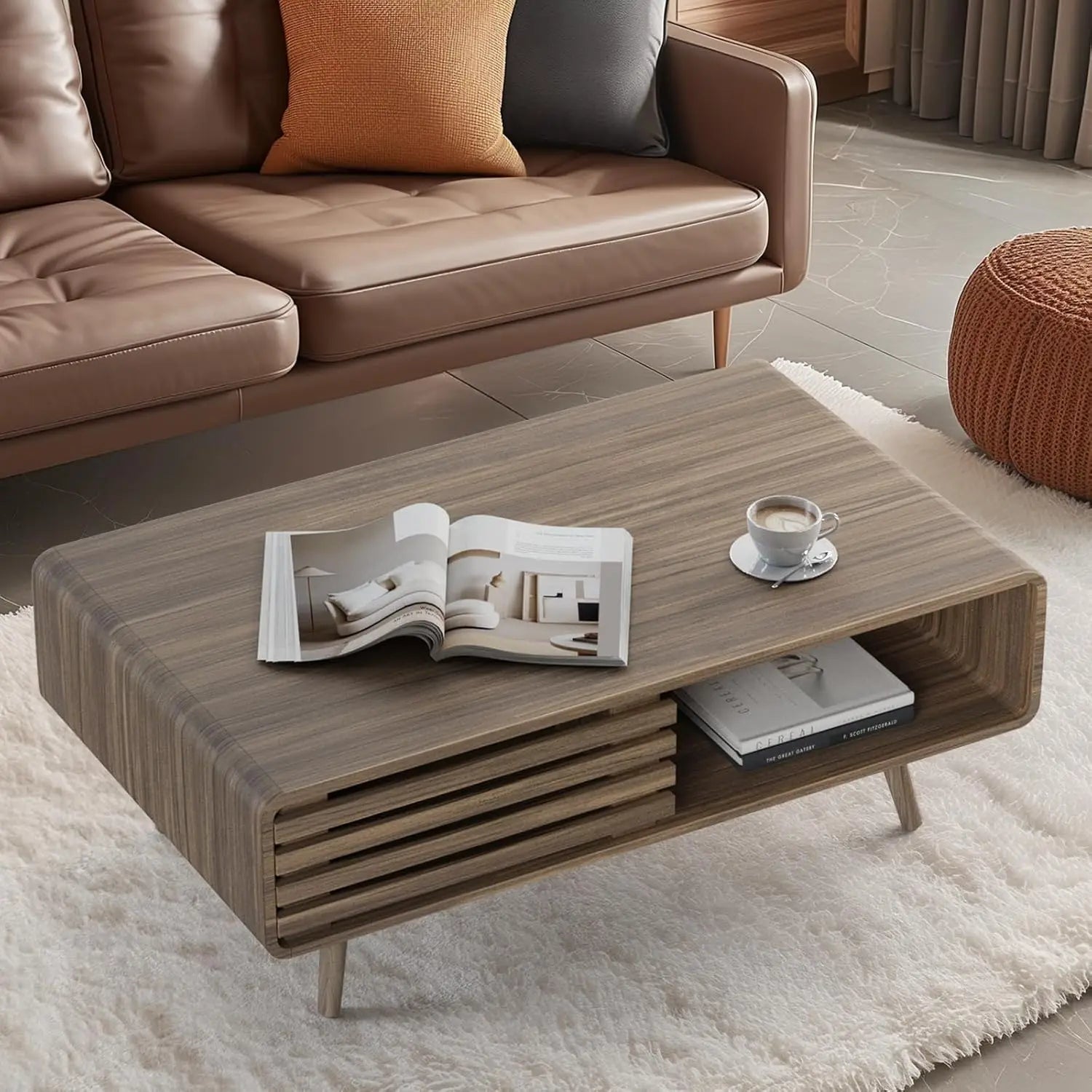 Coffee Table with Storage, Farmhouse Wood Tables for Living Room, Easy Assembly, Suitable for Various Home Styles