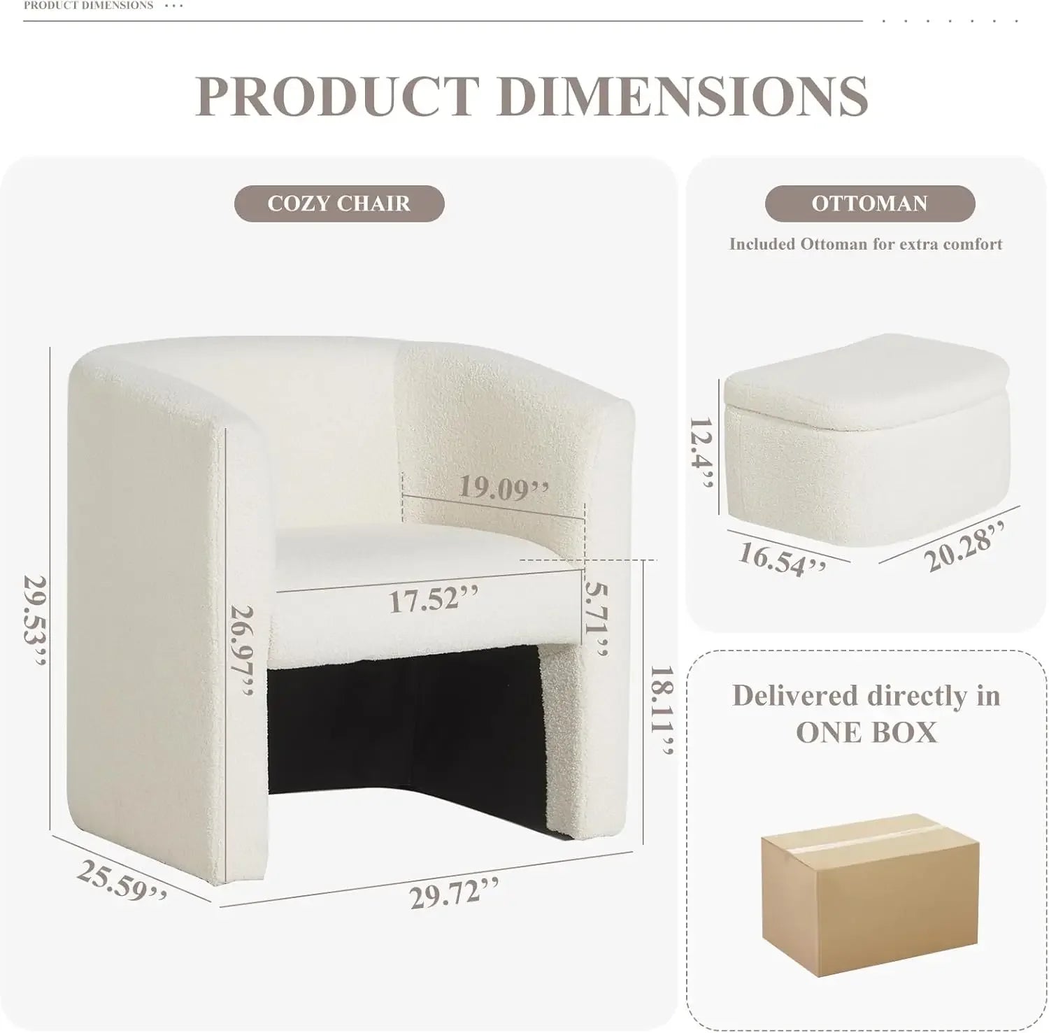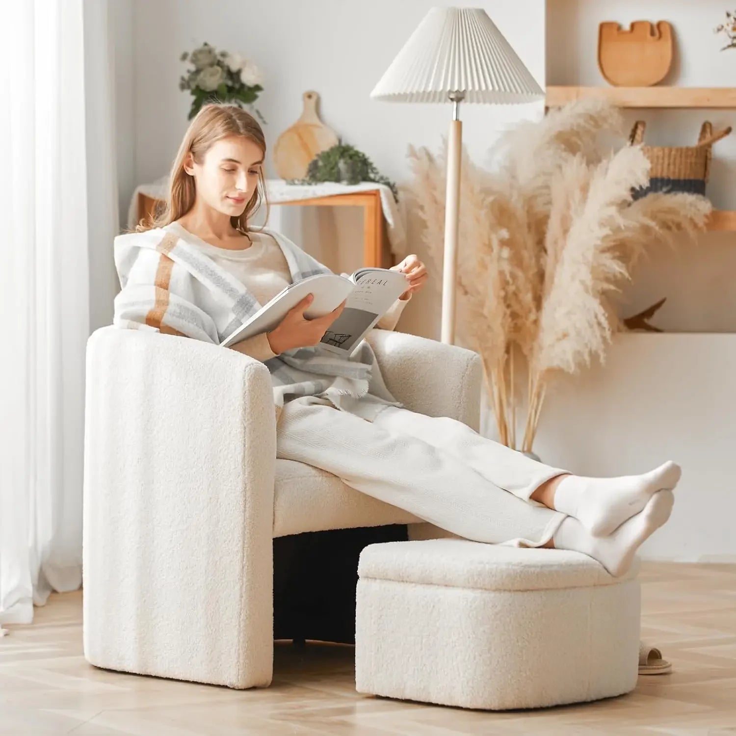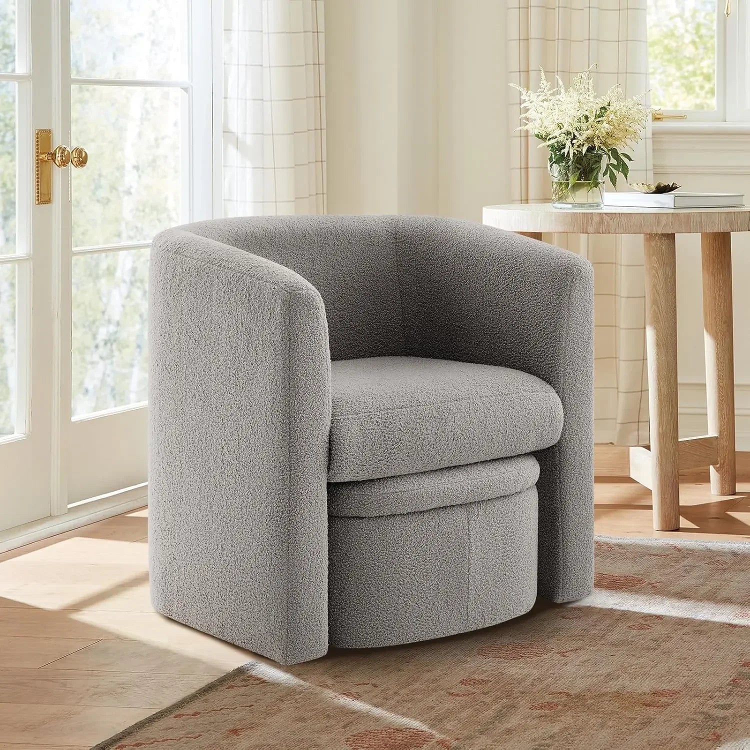 COLAMY Upholstered Sherpa Barrel Accent Chair with Storage Ottoman, Morden Living Room Side Chair, Single Sofa Armchair with Lou