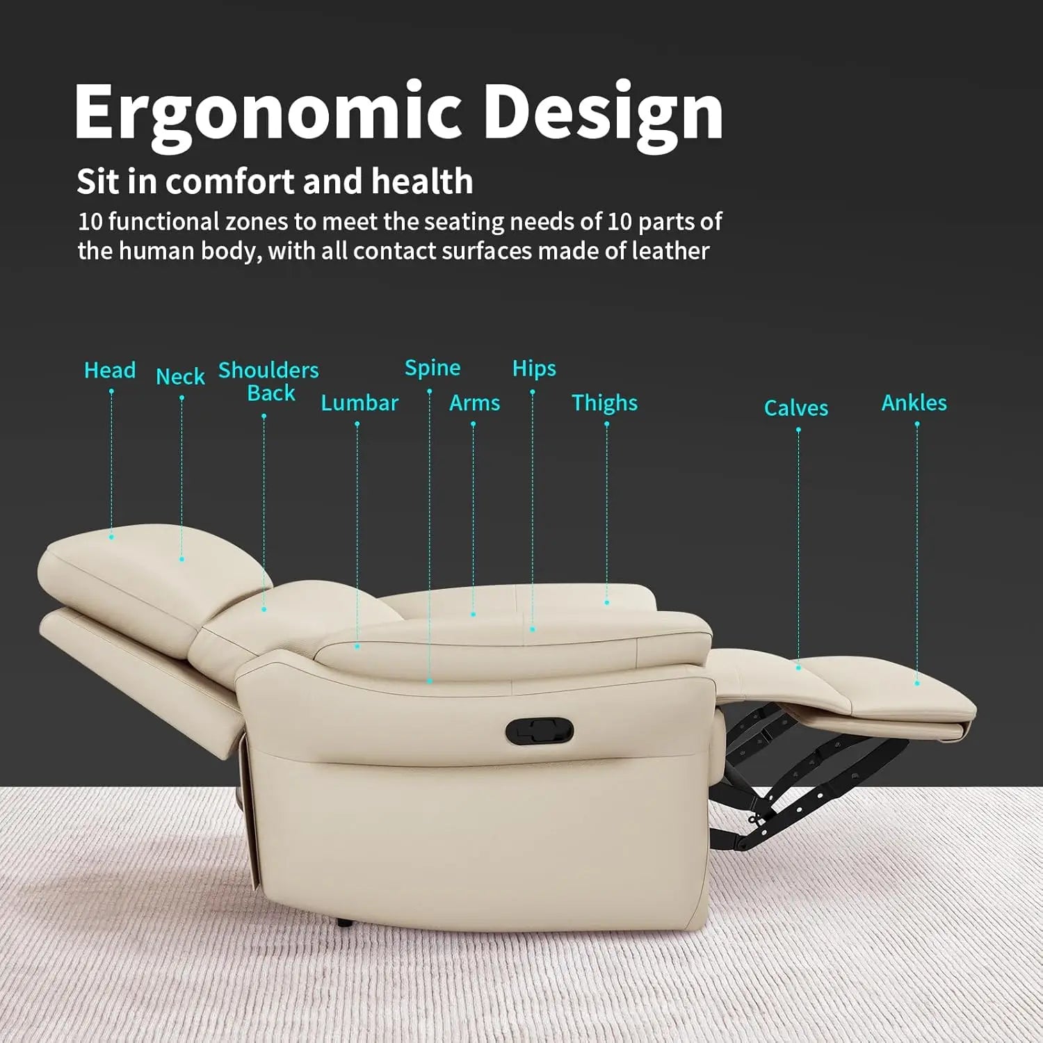 Genuine Leather Recliner Chair,Top-Grain Leather, Ergonomic Living Room Chair, High Back Theater Seating Single Reclining Sofa