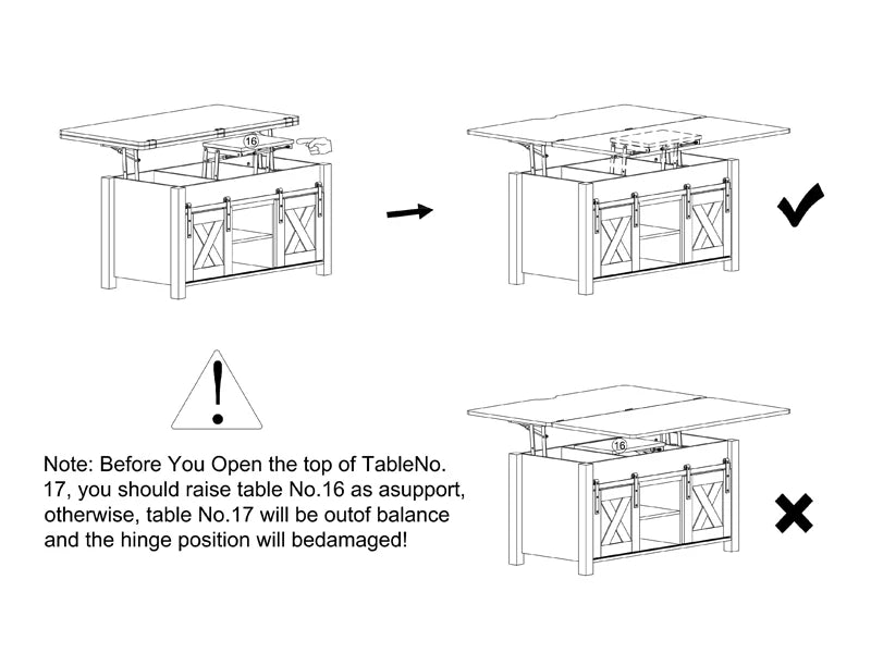 Lift Top Coffee Table, 4 in 1 Multi-Function Convertible Coffee Tables with Storage and Hidden Compartment, Farmhouse Coffee
