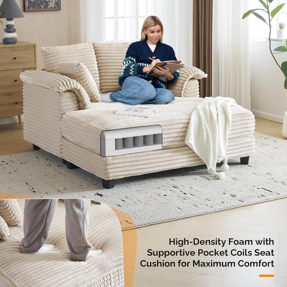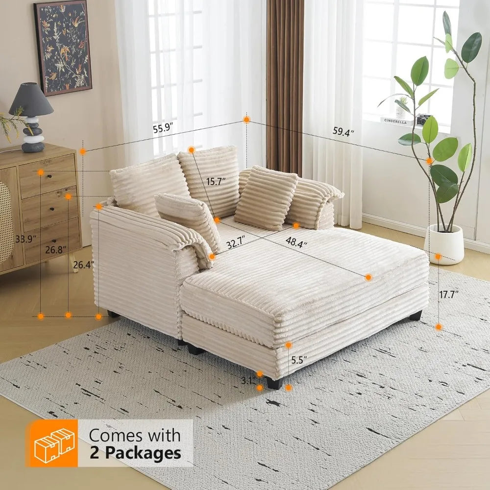 Living Room Chair, 56" Oversized Chaise Lounge Chair, Beige Comfy Corduroy Chaise Sofa Recliner Bed Upholstered Sleeper Couch