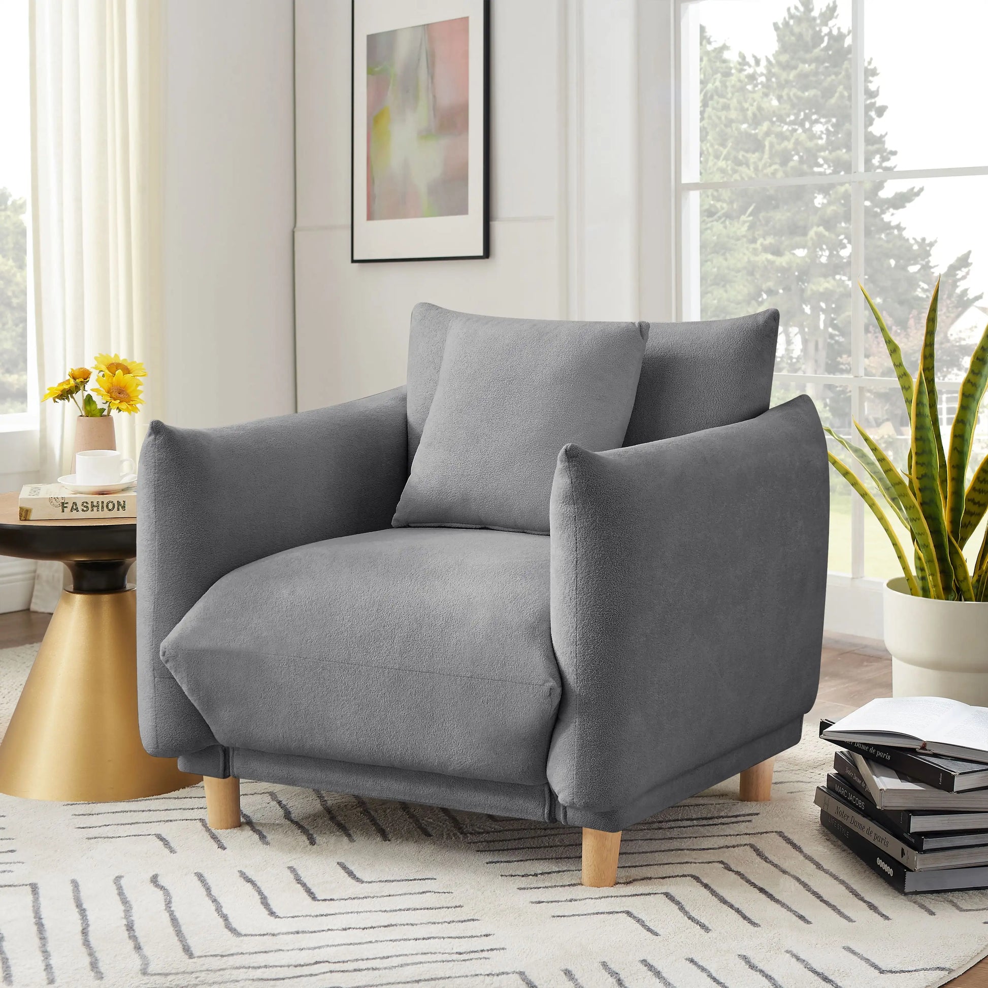 Oversize Accent Chairs for Living Room,Comfy Towelling Fabric Upholstered Armchair,Mid Century Modern Reading Arm Chair Single