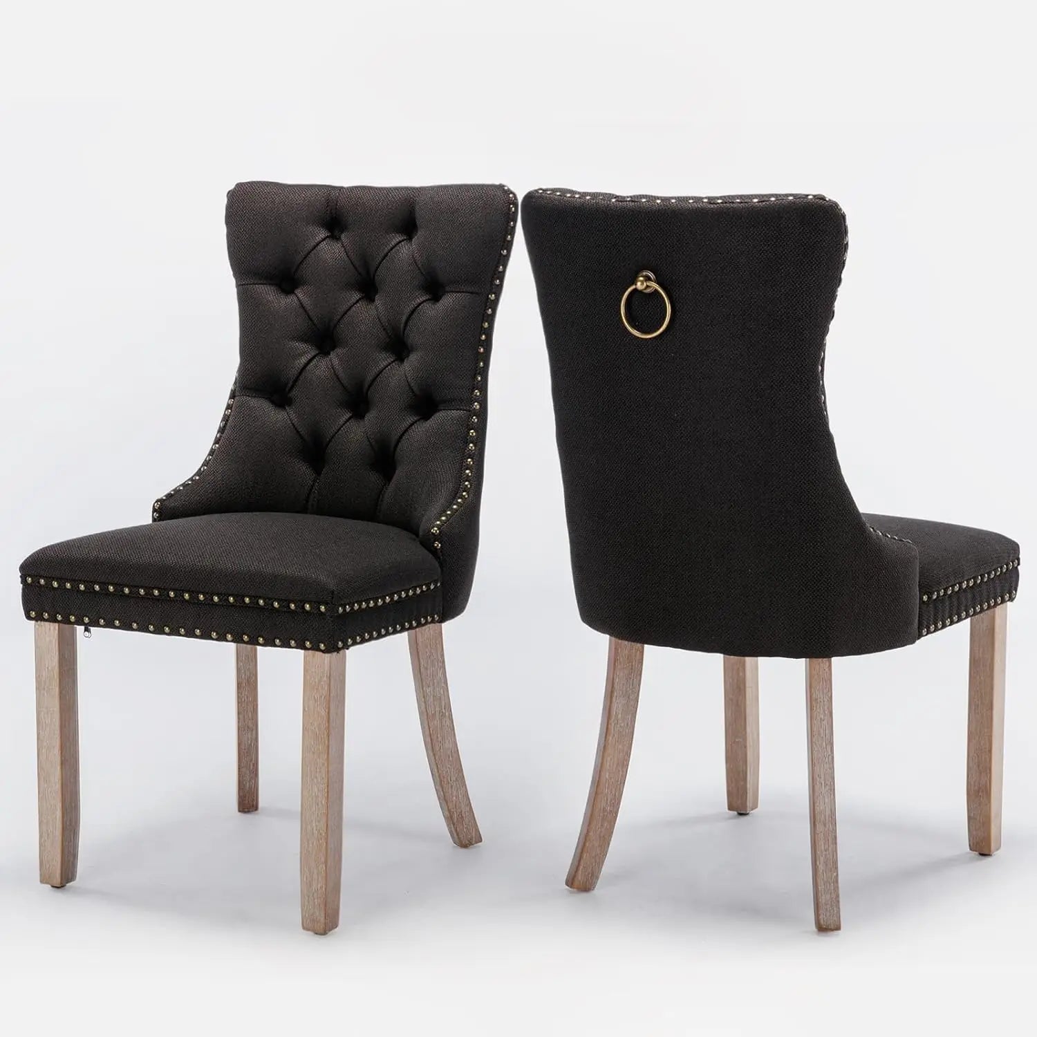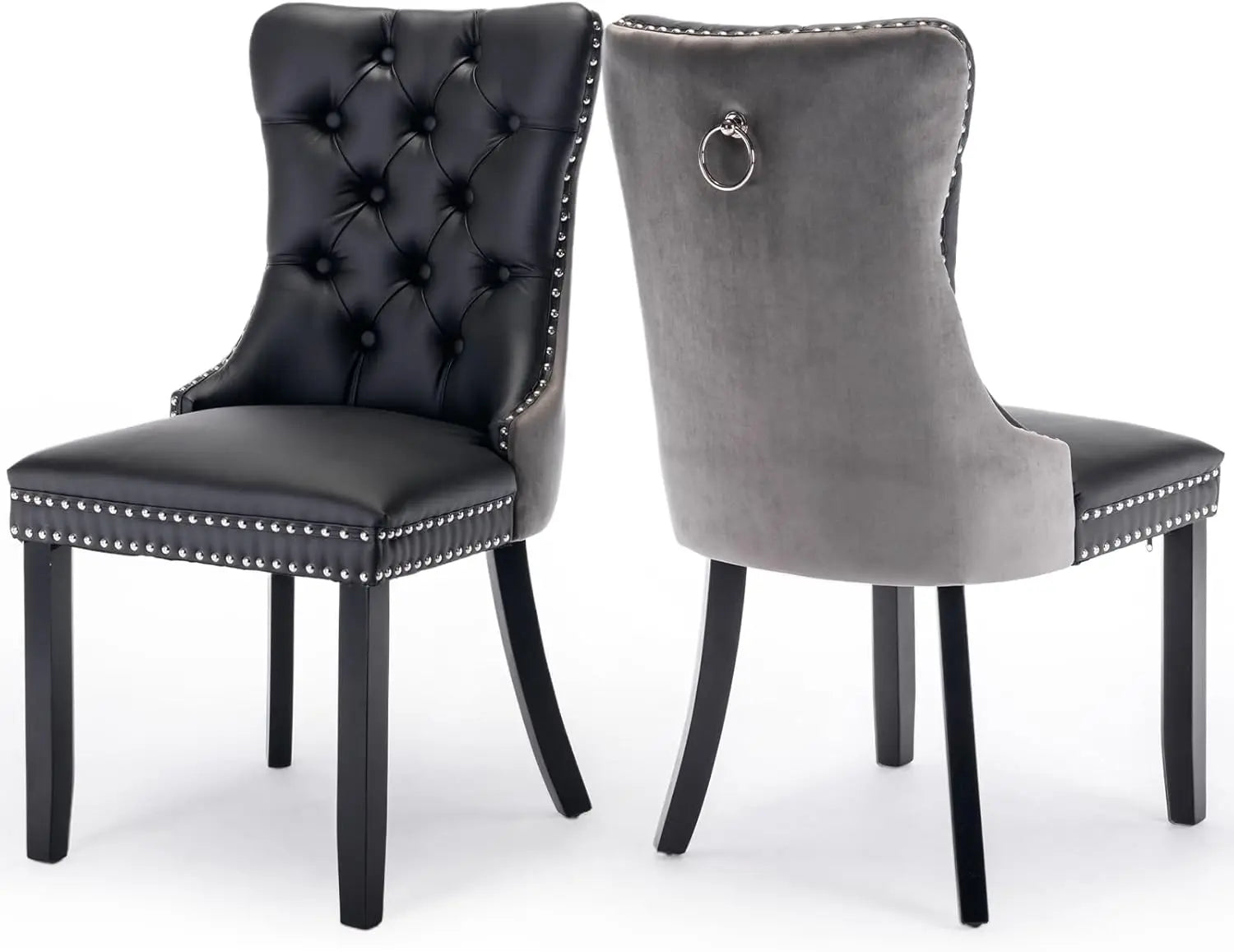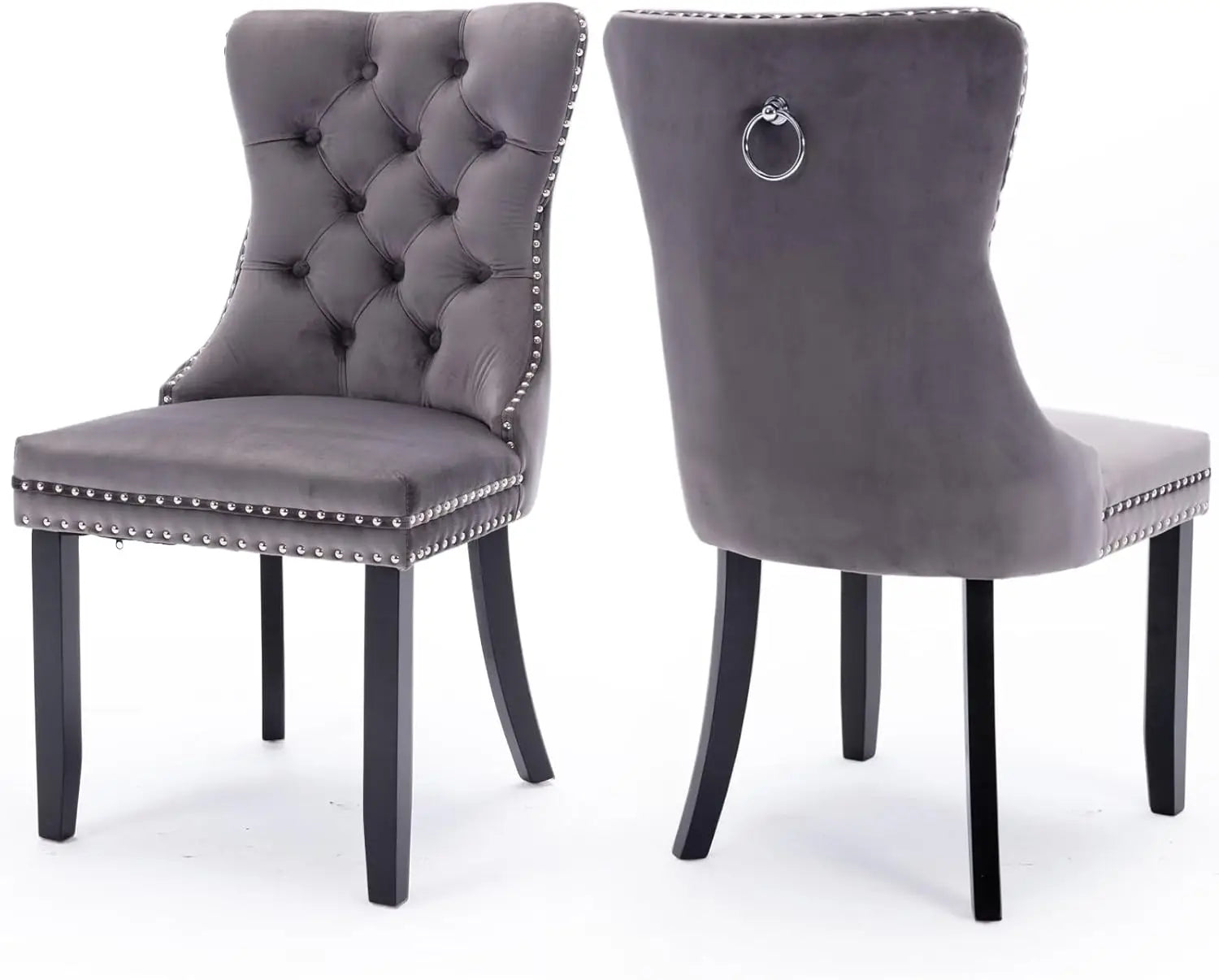 Velvet Upholstered Dining Chairs Set of 6, Nailhead Trim and Gold Plated Leg, Metal Pulling Ring, Modern Style Kitchen Chairs