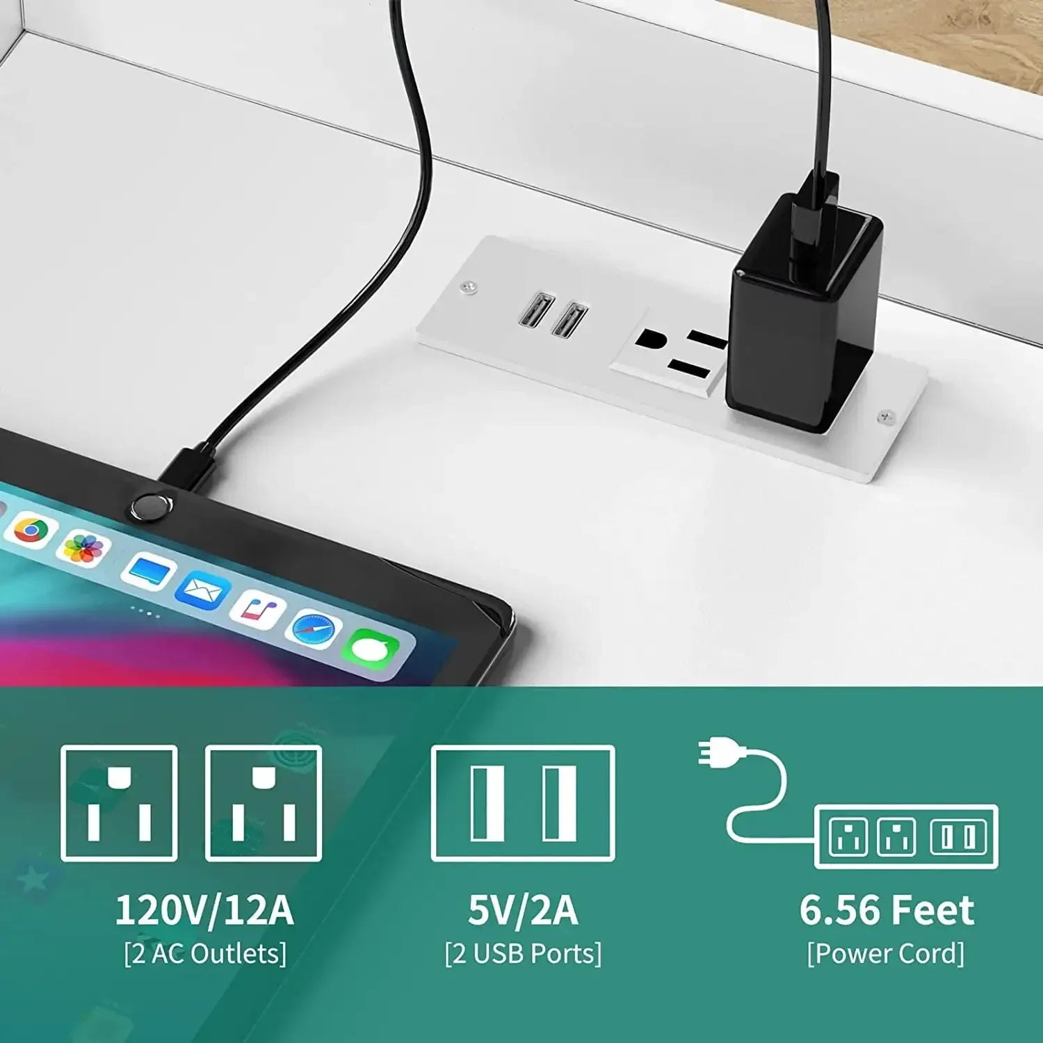 White Night Stand with LED Lights and Charging Station, End Bedside Table with 2 Drawers, Open Storage, USB Ports and Outlets